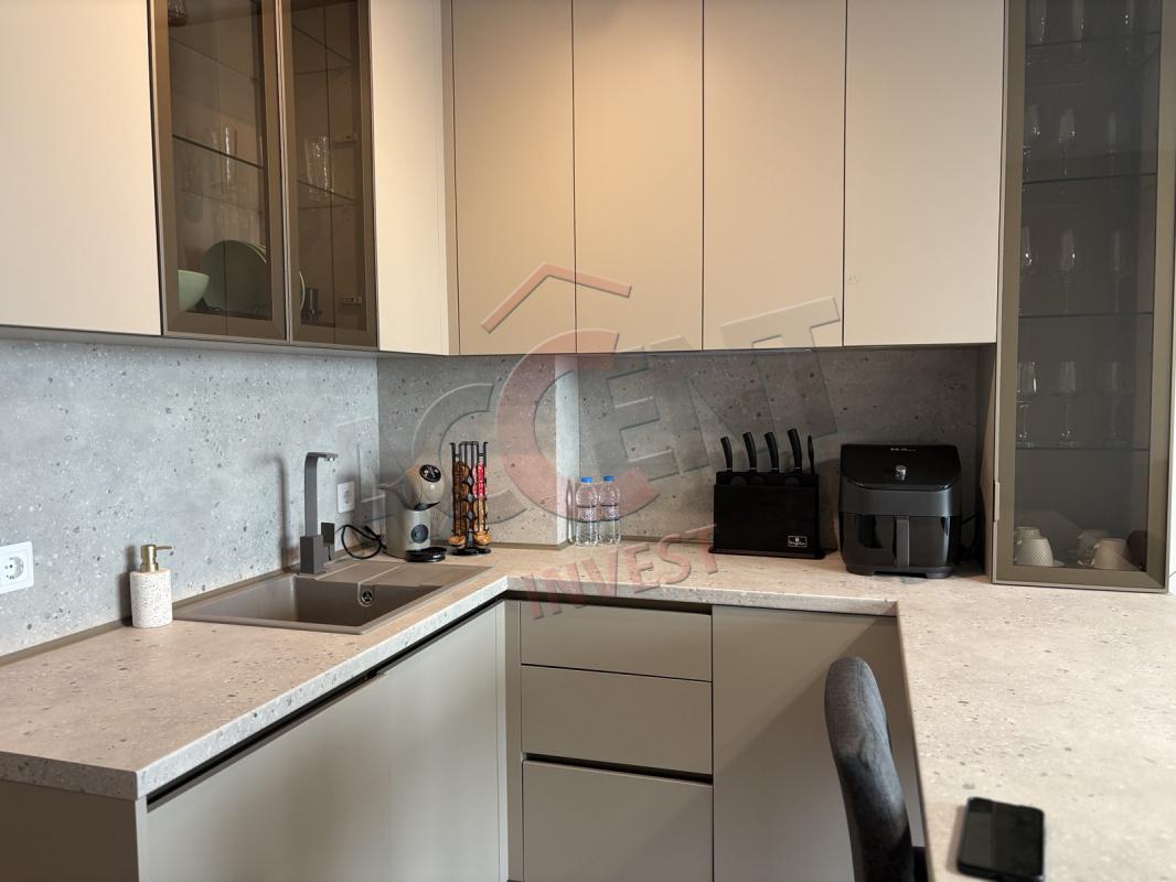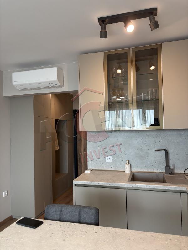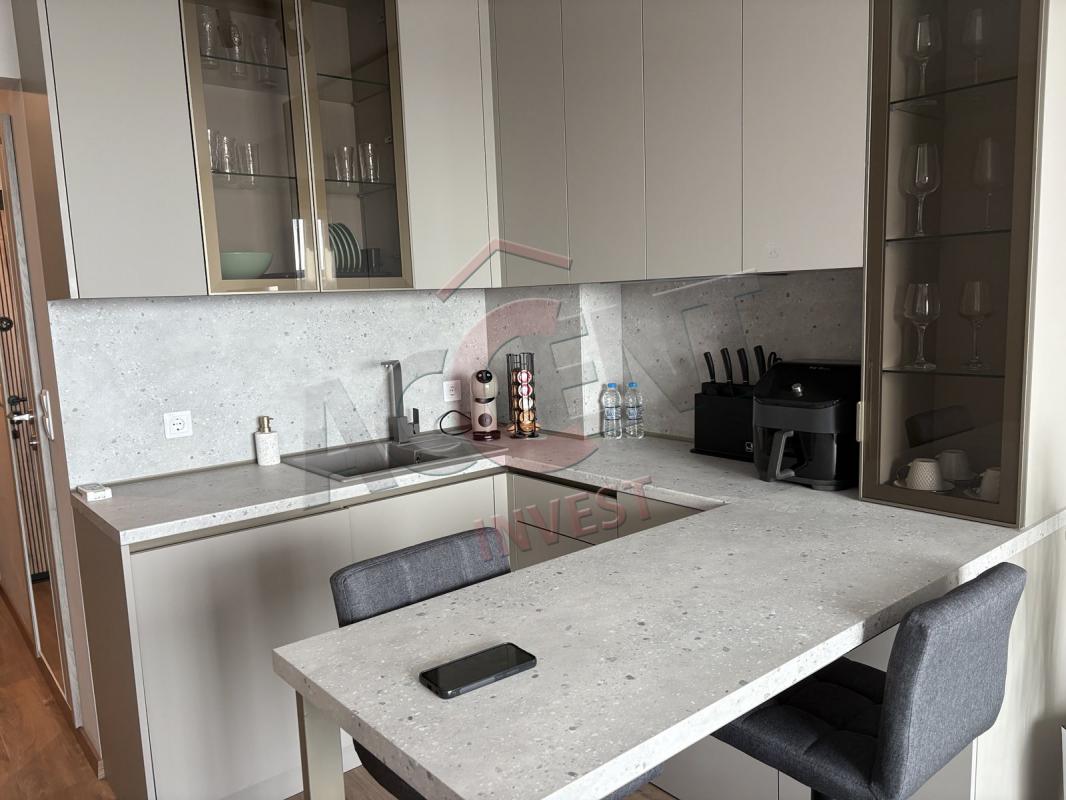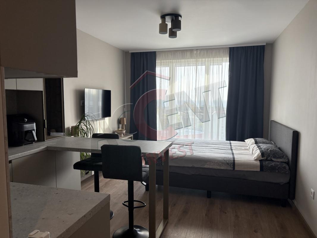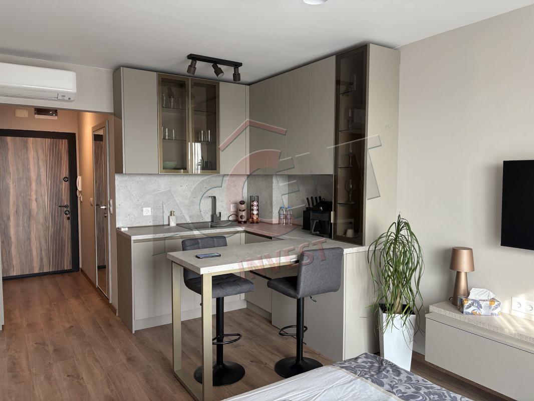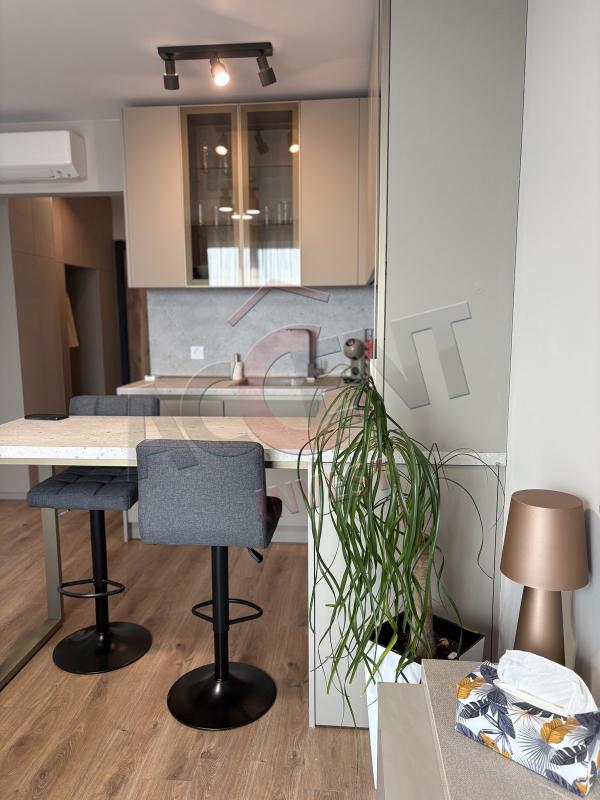 Разположен на шести от общо седем етажа апартаментът е с площ от 32 кв.м и се състои от коридор, комбиниран санитарен възел, стая с кухненска част, дневна и тераса. Апартаментът е функционално обзведен и оборудван с всичко необходимо за едно домакинство. Чисто нов първи наематели. Жилището разполага с паркомясто и се предлага за краткосточни наеми (месец, два, шест).