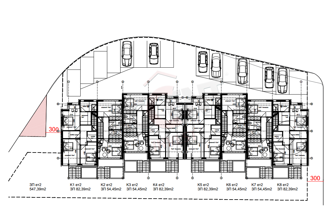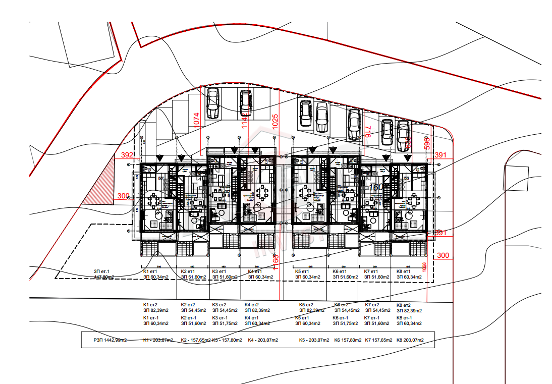 Дворно място: от 180 кв.м., паркоместа 26 кв.м.(2 броя)