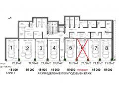 Блок 1 е с ориентация Изток-Запад. Състои от три надземни етажа, един тавански и един полуподземен етаж на които са проектирани гаражи и изби, за които е предвидена вентилация.