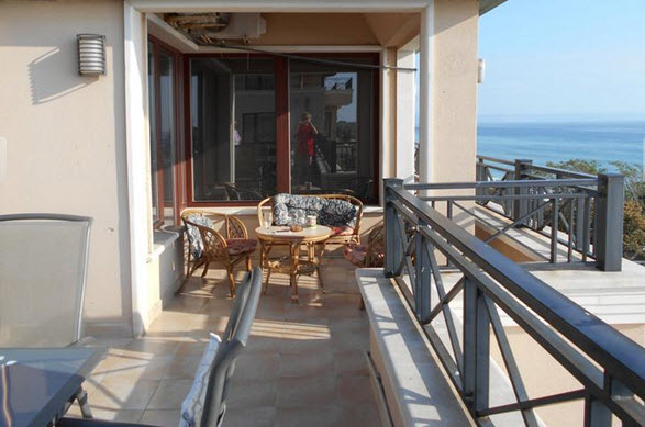 Представяме на Вашето внимание тристаен апартамент разположен на метри от морския бряг в курорт Златни пясъци. Сградата се намира на първа линия в луксозен комплекс с много удобства и осигурени парко места. Апартамента е тип пентхаус на седми етаж с голяма панорамна тераса към морето около 100 м2. Изложението на имота е изток, запад и юг със следното разпределение: входно антре, дневен тракт с кухненска част, две спални, баня и тоалетна. Апартамента е напълно обзаведен и оборудван с всичко необходимо, отлична изолация, пет камерна дограма, климатици във всяка стая. Има възможност за преустройство и разширяване на жилището.