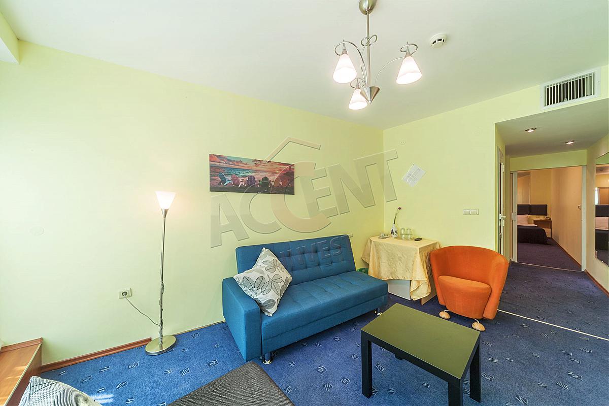 В хола има удобна мебел за гости и място за работа, както и сейф.