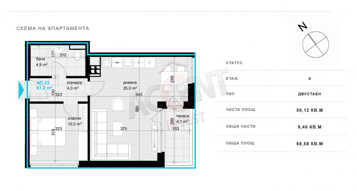 Property type: Apartment -> Two rooms
