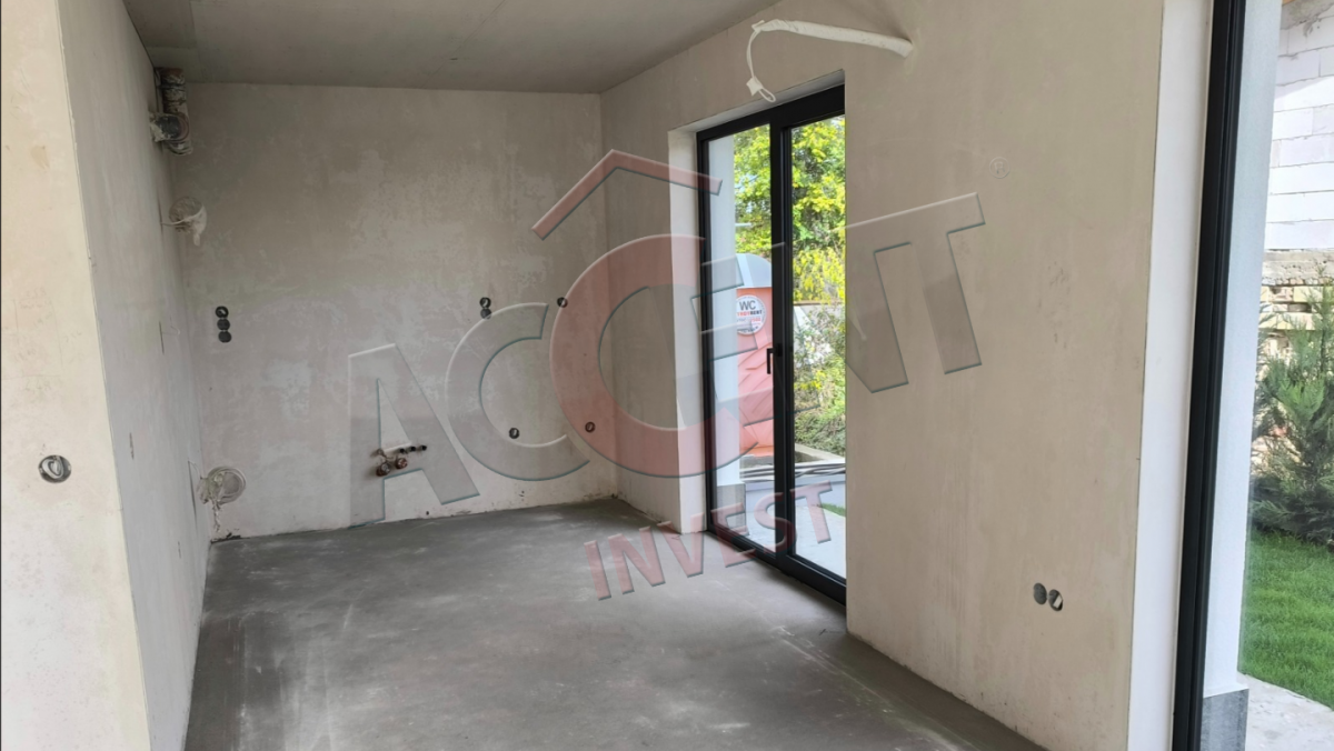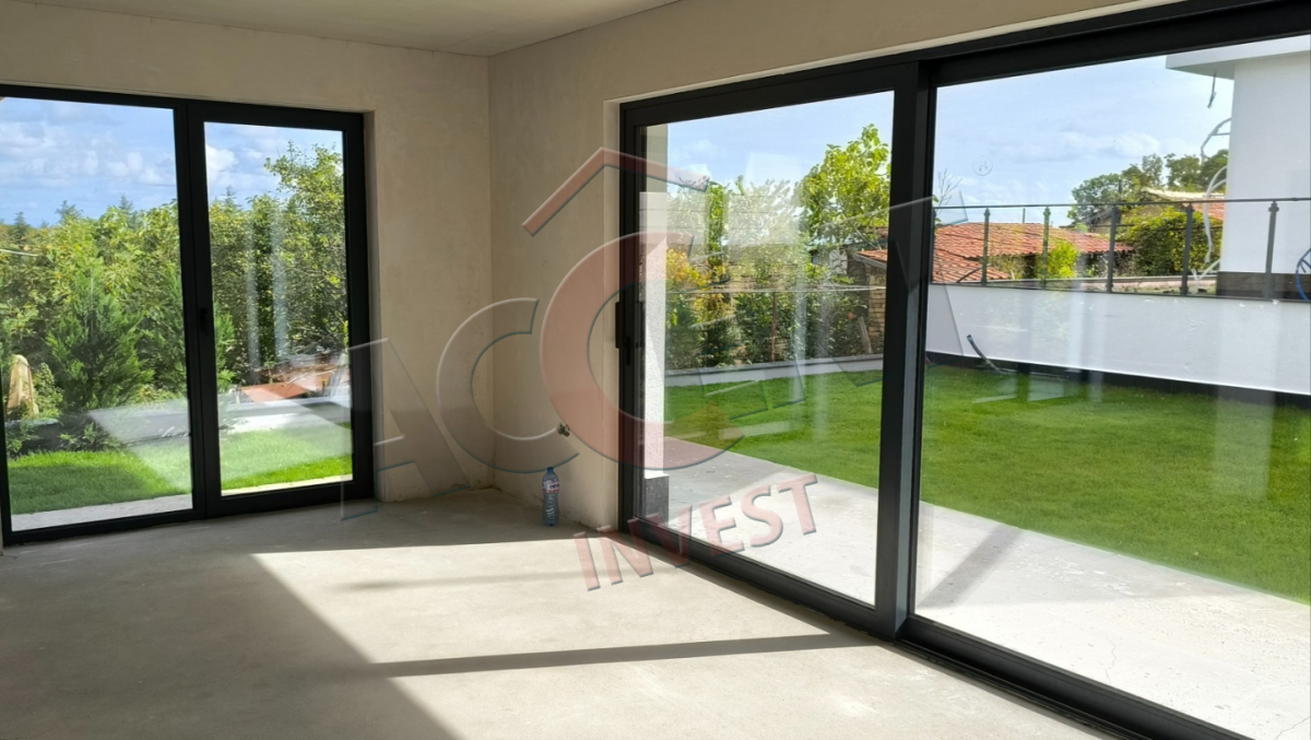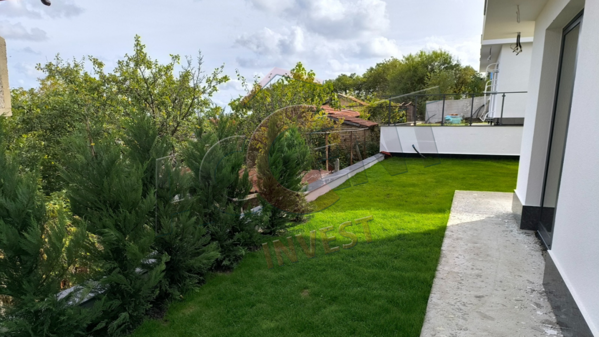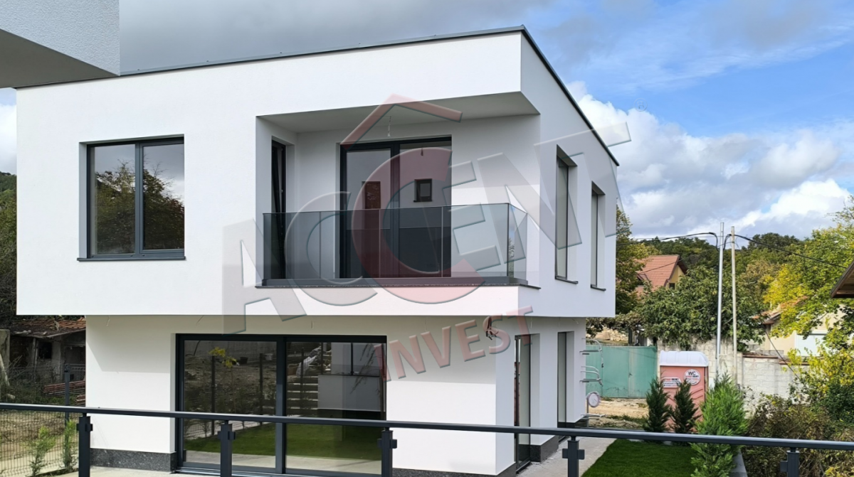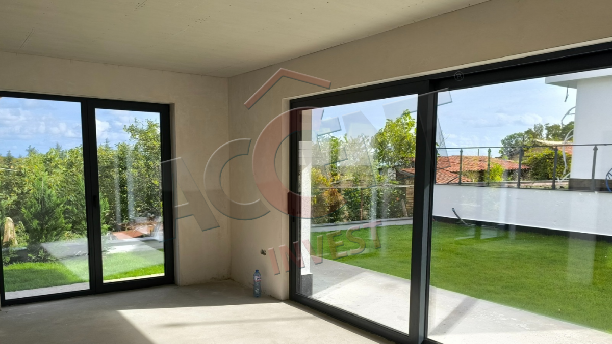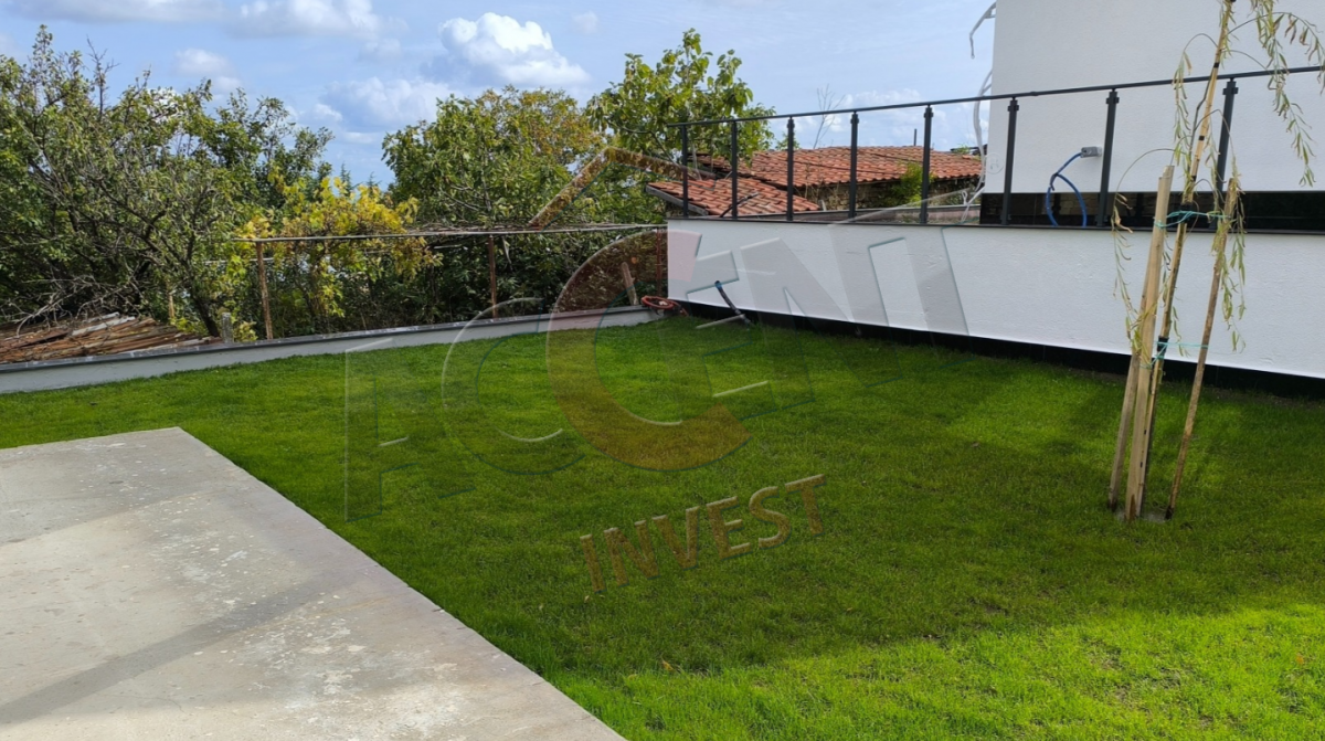 Завършена по БДС с материали от висок клас. Алуминиева дограма - троен стъклопакет. Ток, вода, канализация, сондаж и зарядна станция за електрически автомобил.