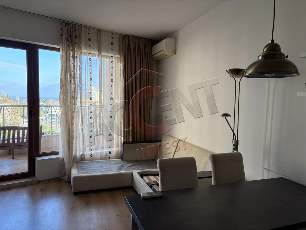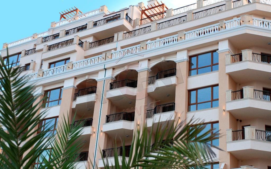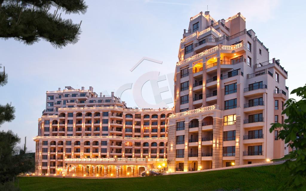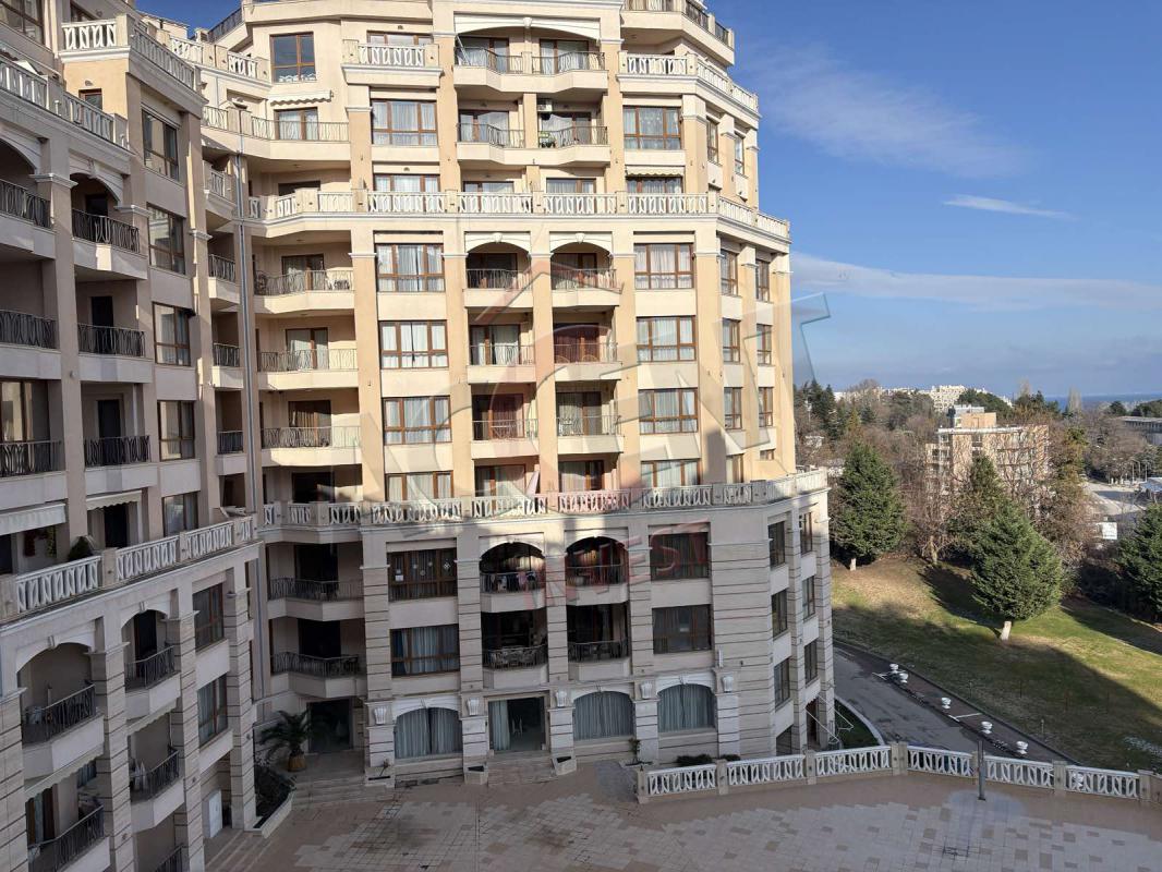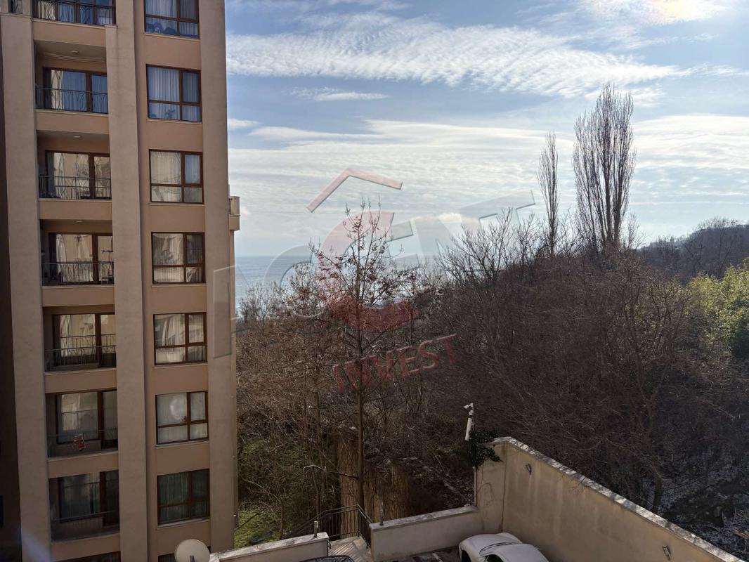 The apartment is located on the fifth residential floor and has an area of 109 sq.m. (net residential area 96 sq.m.) and consists of a living room with a dining room, two bedrooms, a combined bathroom and a storage room. Two terraces with sea views, one with an eastern exposure and access from the living room and the second with a southwestern exposure and access from both bedrooms. There is a possibility of free parking on the territory of the complex.