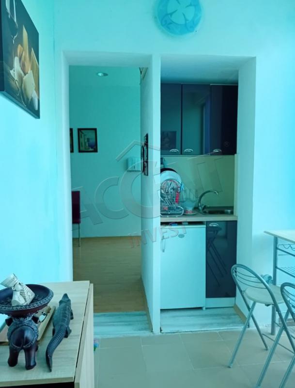Accent Invest offers an exclusive apartment in a 4-star hotel, in the center of Golden Sands Resort, Varna, 100 meters from the sea. The property has the status of an apartment in an apartment hotel. Area - 70 sq.m. common areas, total area: 60 sq.m. The property has 2 separate entrances - from the pools and from the hotel. It consists of three rooms - a large bedroom with a transition to the kitchen and two large wet rooms, another room with a separate entrance.